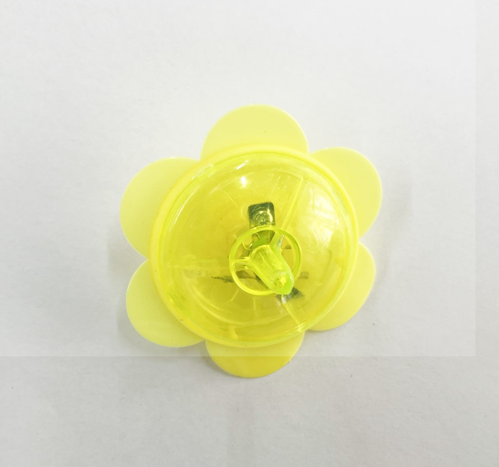 まず本教材「光るコマ」を配布し、自由に活動する時間をとります。コマを受け取った子どもたちはすぐに回して遊び始めます。回したと同時に「え!?」「すごい!」という声が至るところから聞こえてくるでしょう。教師はこの感嘆詞を問い返しによって、広げていきます。「なんで、今「え!?」って言ったの?」と問い返すことで、子どもは「だって、コマを回したら光ったから。」「普通のコマは光らないから。」「なんで光るの?」と、気付きや疑問を自分の言葉で語り、自覚していきます。さらに、「なんで光るんだろうね?」と投げかけることで、「きっと中身が〜のようなつくりに…」と熱心に説明を始めます。ある程度のところで「じゃあ君たちが明らかにしたいことは何だろう?」と問いに戻すよう促し『光るコマはどのような仕組みで光るのだろうか。』という趣旨の問題が見いだされます。