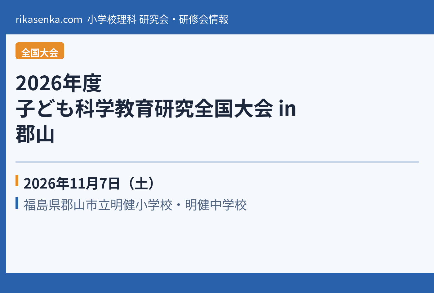 【2026年11月】2026年度 子ども科学教育研究全国大会 in 郡山